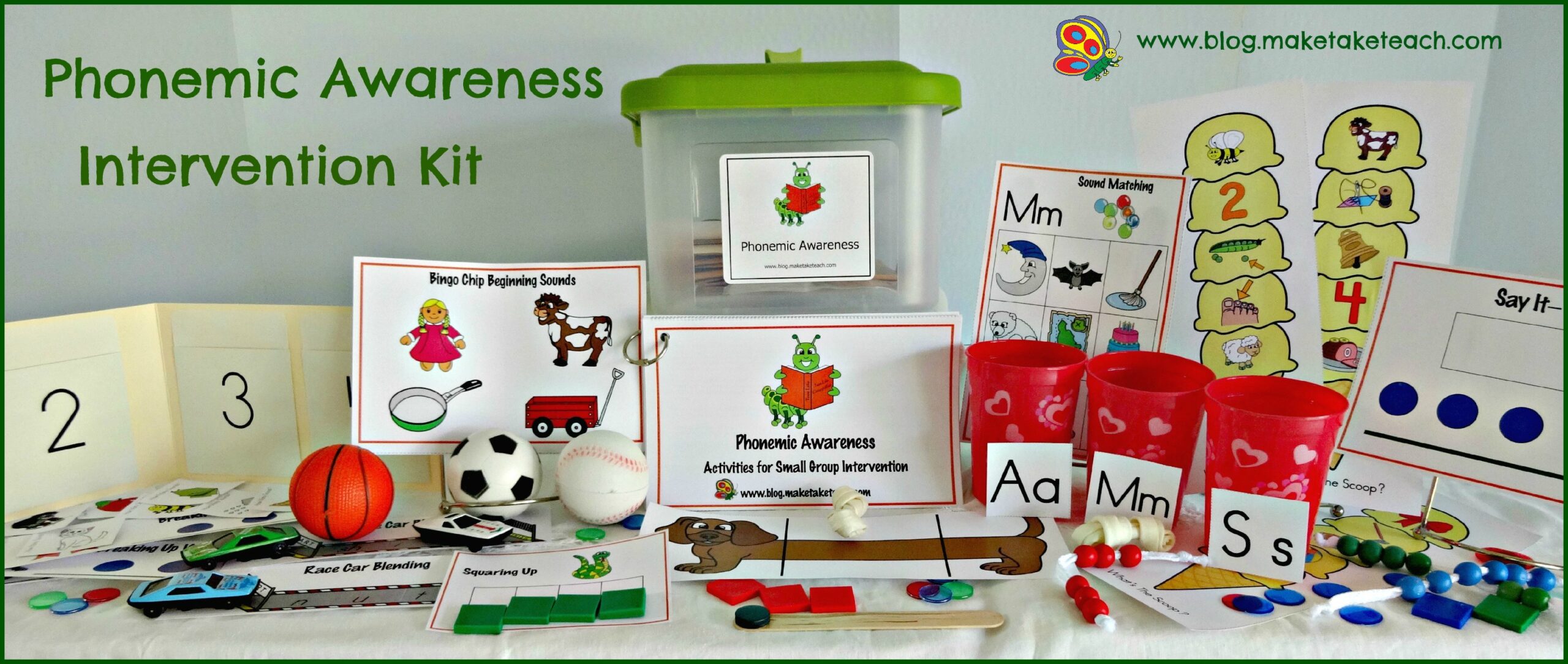 Tired of downloading and printing from TpT or Teachers Notebook? Let me do it for you. When you order a Make, Take & Teach intervention kit you’ll receive all the materials and activities printed in color and on 90 lb cardstock ready for assembly. Each kit is contained in a sturdy Sterilite container which is ideal for storage in your classroom. The kits contains 15+ hands-on activities designed for small group instruction. Many of activities are printed in triplicate for multiple student use. A teacher’s manual contains step-by-step directions for introducing each activity. Click HERE to order your Phonemic Awareness Kit. This kit contains 15 activities to teach sound isolation, phoneme manipulation, segmenting and blending. Click HERE to order the Alphabetic Principle Kit. This