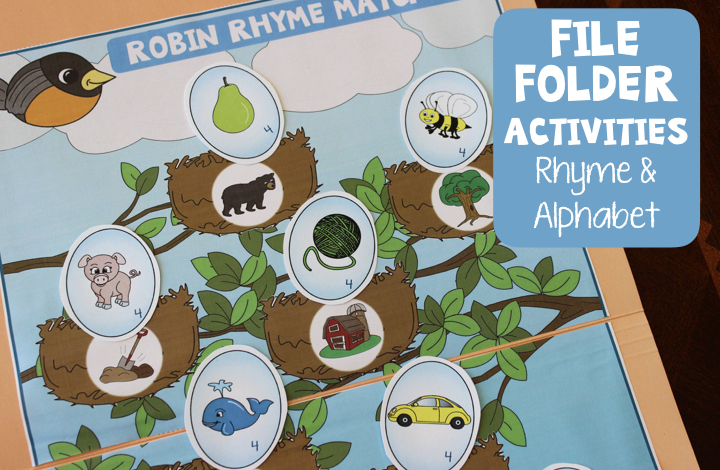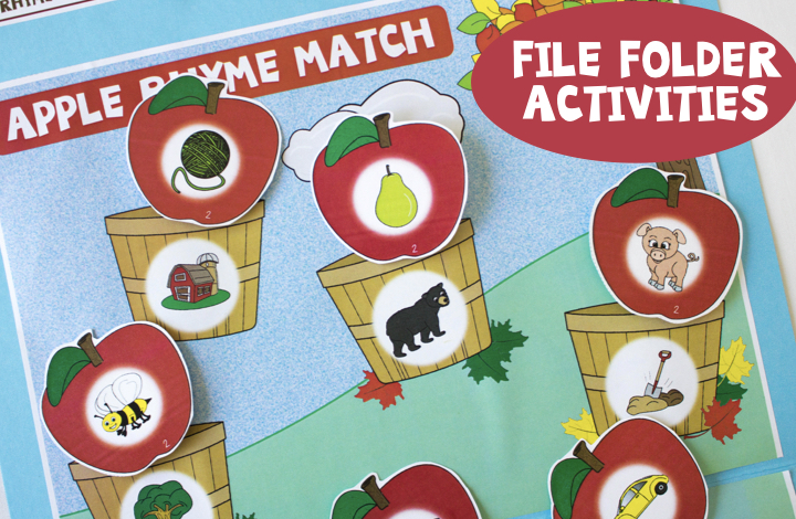 We just LOVE October – the changing of the leaves, the crisp morning air, and pulling out all those halloween themed games! Fun! I have to admit that the fall themed and halloween themed activities are my favorites! A few years ago my artist created this absolutely adorable spider and I just loved creating games and activities using him. For our little preschool and kindergarten friends, I created both rhyme and alphabet activities. When you download the spider themed activity for rhyme you will receive the templates and corresponding spiders for creating four unique file folder activities designed to learn and practice the skill of rhyme. Two templates contain 6 rhyming matches and two templates for 8 matches! The File