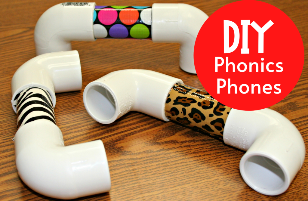 Make Your Own Phonics Phones! Phonics phones and mirrors are two of the most important items in an early elementary small group instructional area. Phonics phones amplify the student’s voice helping the student to focus and pay attention to the individual sounds.  Although you can purchase them, you can certainly make your own phonics phones.  These phones are super easy to make.   Just follow the directions below: Purchase a 3/4″ PVC pipe and 3/4″ elbow joints (you will need 2 for each phone) Cut PVC pipe into 3 1/2 inch sections Put an elbow joint on each end of the pipe Colorful duct tape can be wrapped around the center of the pipe for fun. Use the phones… 1.