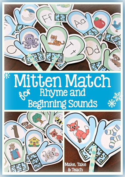 Here in Northern Michigan winter can last for months (and I mean months and months). We often have snow from late November through mid-April. Well, up in the north, putting on your boots, mittens, hats, coats, and snow pants is an everyday event. It can take up to 10 minutes to get our little kindergarteners ready to go outside–and then another 10 minutes to get undressed! Multiply that routine by three times a day–craziness! Whether you live in a winter wonderland or in warmer parts of the world, the Mitten Match activity is sure to be a hit with your kiddos during the winter months. Last year, my fabulous artist created these adorable mittens. They were perfect for creating a